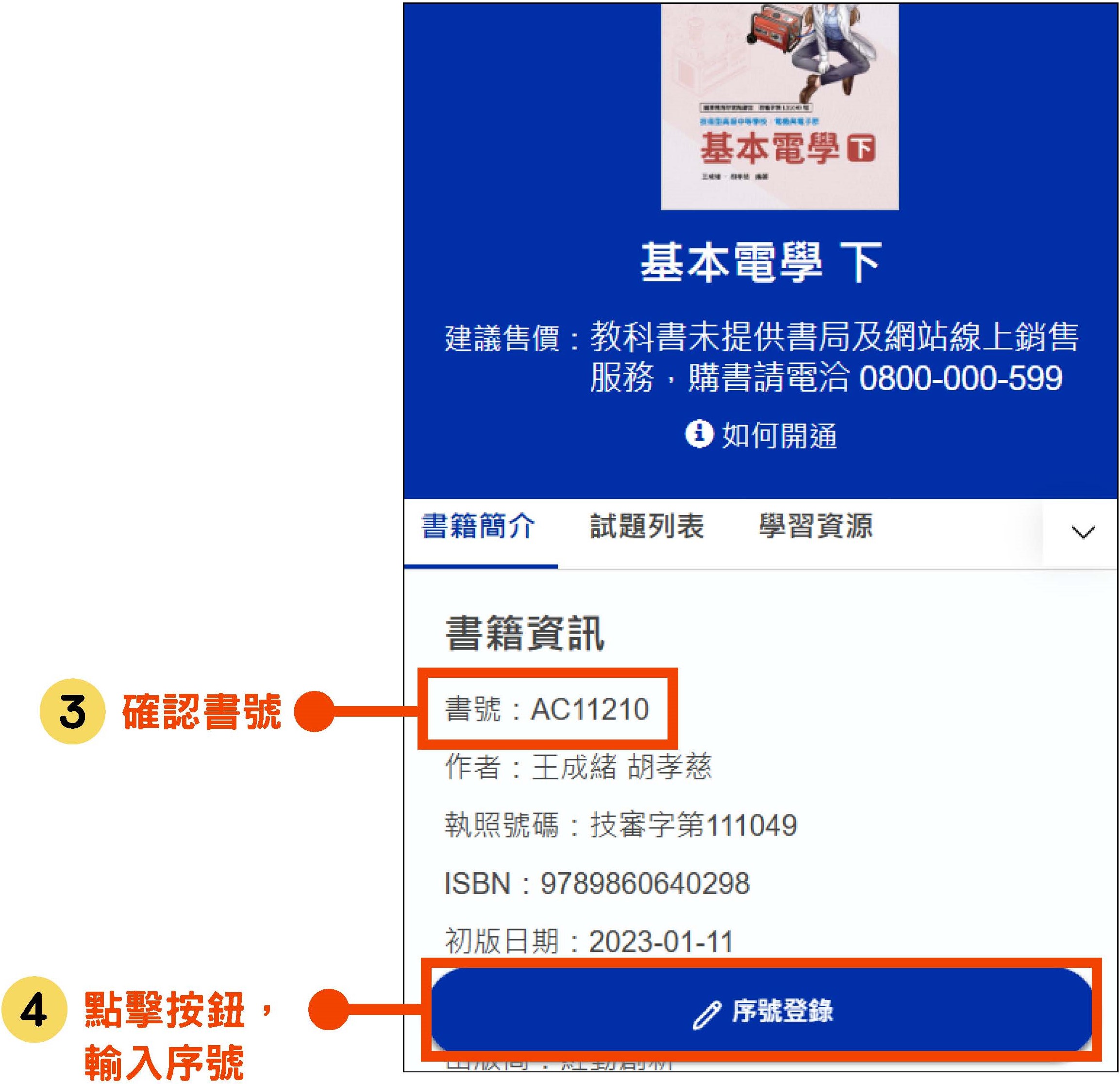 商品詳情頁中,點擊「序號登錄」按鈕。