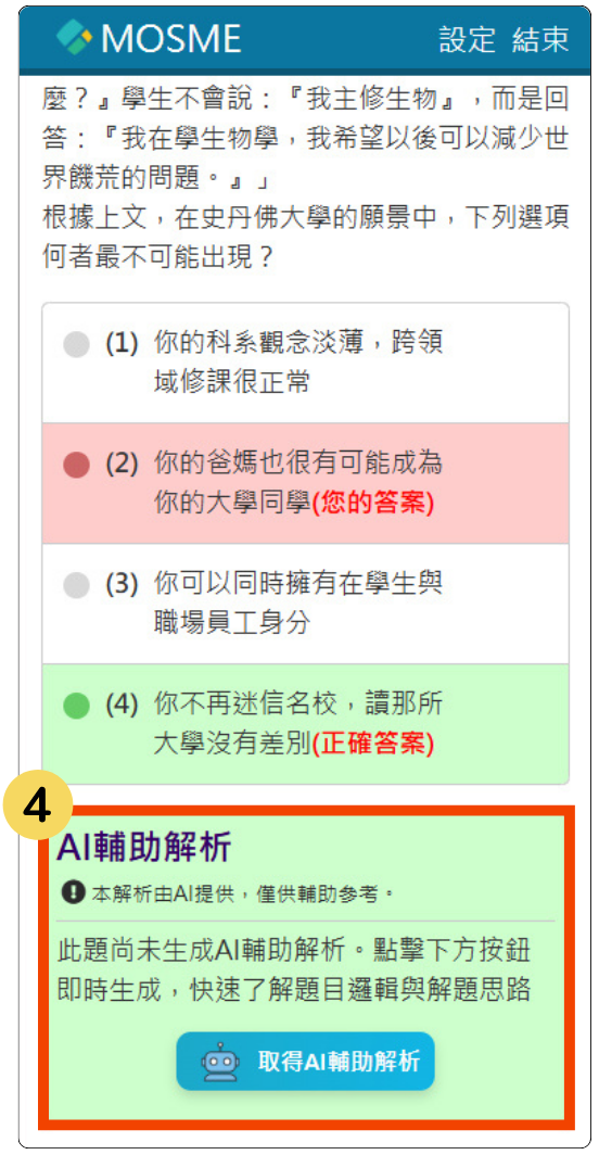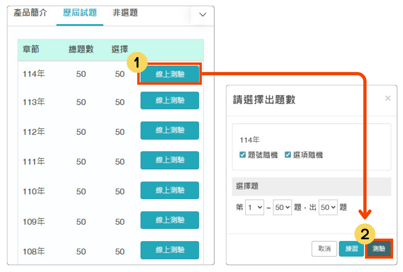 (1) 點選「線上測驗」開始使用